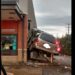 La camioneta entró parcialmente al interior del edificio y se balanceaba sobre una barrera protectora.