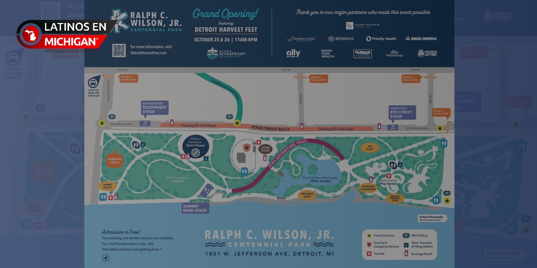 Detroit, MI. — Este fin de semana, la ciudad de Detroit celebra un hito urbano con la apertura oficial del Parque Centennial Ralph C. Wilson Jr., un espacio verde de 22 acres que transforma el paisaje del río y se estrena con una edición especial del Detroit Harvest Fest & Food Truck Rally.