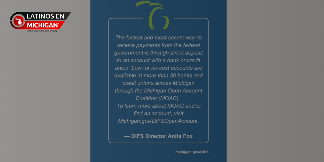 “El depósito directo no solo es más rápido, sino también más seguro que los cheques en papel”, afirmó Anita Fox, directora de DIFS. “Gracias a la Coalición de Cuentas Abiertas de Michigan (MOAC), los residentes pueden acceder a cuentas sin cargos ocultos, con costos bajos o incluso gratuitas, en más de 30 instituciones financieras del estado.”